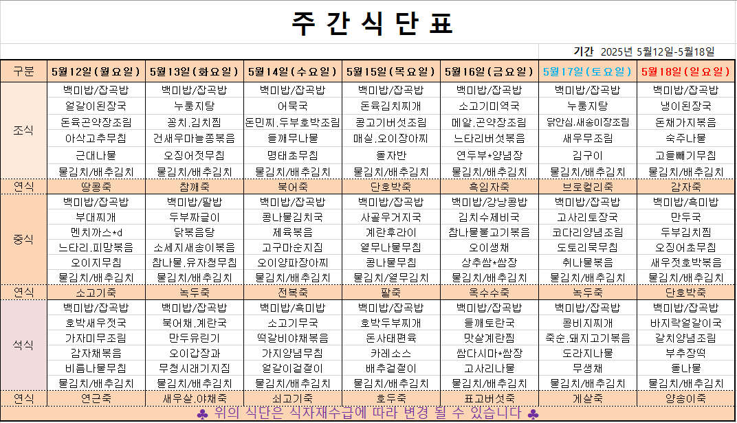 5월 2째주 주간메뉴표입니다 페이지 정보 작성자 관리자 댓글 0건 조회 373회 작성일 25-05-09 17:40 본문 목록 이전글5월 4째주 주간메뉴표입니다 25.05.17 다음글5월 1째주 주간메뉴표입니다 25.05.03